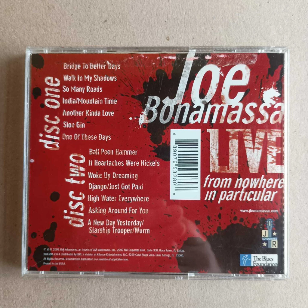 "Live From Nowhere In Particular" é um álbum duplo ao vivo do aclamado guitarrista e vocalista de blues rock Joe Bonamassa. Lançado em 2008 nos EUA pelo selo J&R Adventures (com número de catálogo PRAR65328), este conjunto de CDs captura a energia explosiva e a virtuose inconfundível de Bonamassa em uma de suas performances.